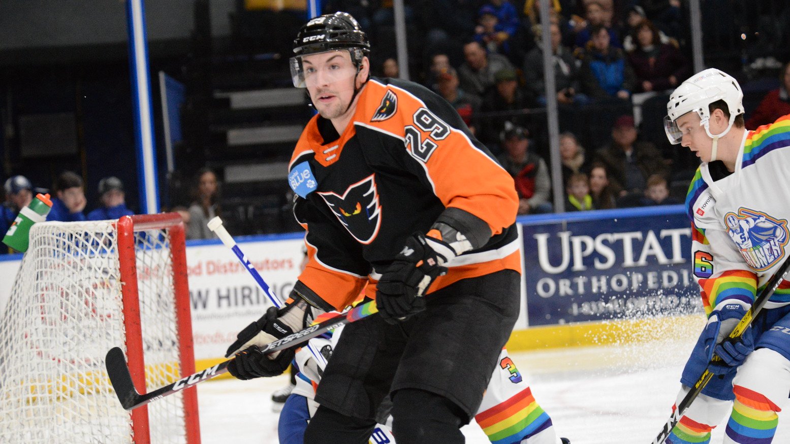 Phantoms goalie Kirill Ustimenko kept the Phantoms in the game finishing the night at thirty-six of thirty-eight saves allowing two goals while Crunch goalie Spencer Martin almost had a shutout going twenty-three of twenty-four saves allowing one goal.