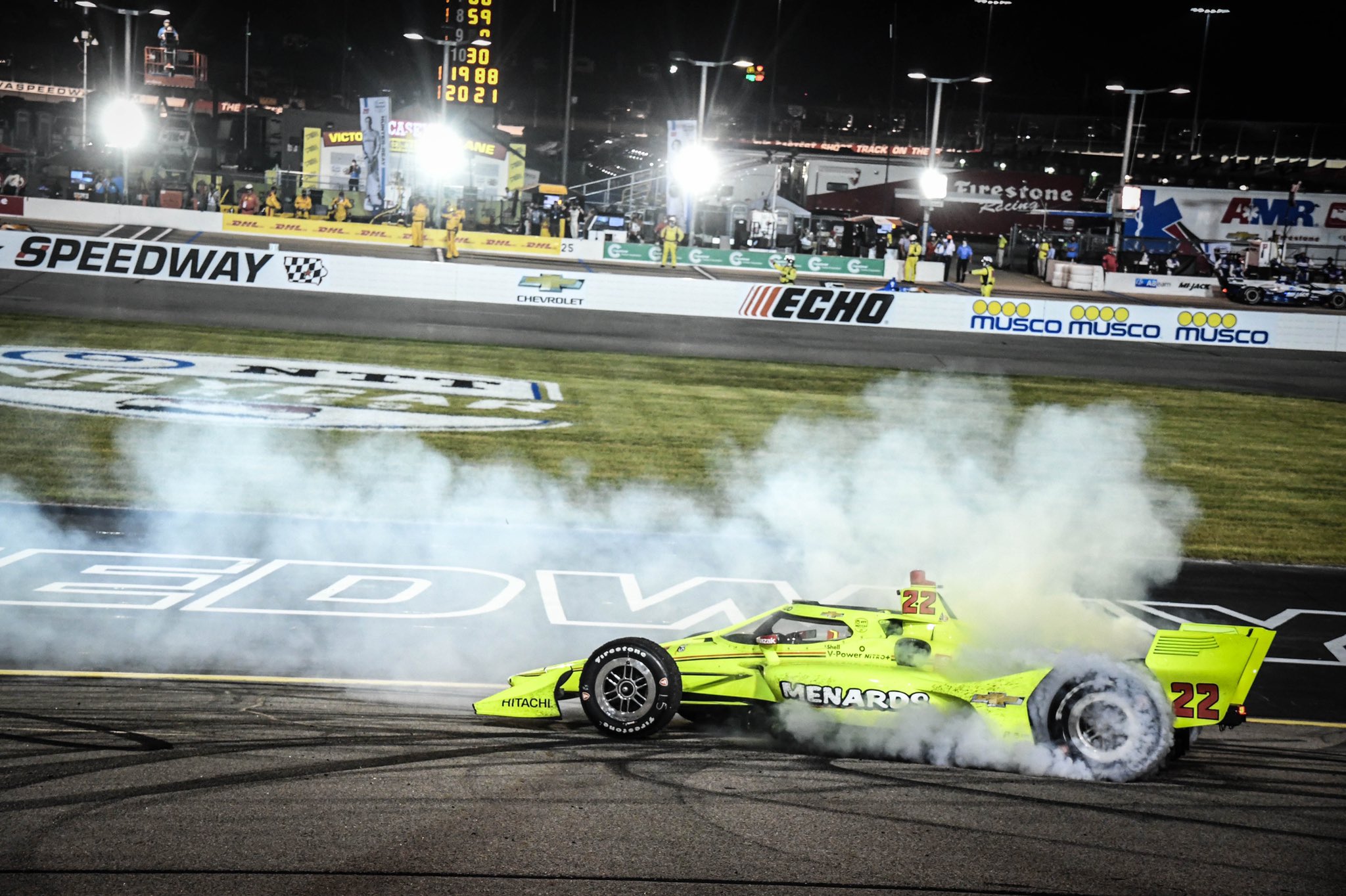 The caution was extended for the wreck clean up, and Simon Pagenaud headed to pit road relinquishing the lead to Pato O’Ward. The race resumed on lap 170. Pagenaud was able to get by the number seven car of Oliver Askew for second and had his sights set on O’Ward. He would catch and pass O’Ward for the lead on turn one of lap 177. As Pagenaud regained the lead, Scott Dixon, at one point, was a lap down in the race, made his way to second place, and began chasing down Pagenaud as the laps were winding down.
