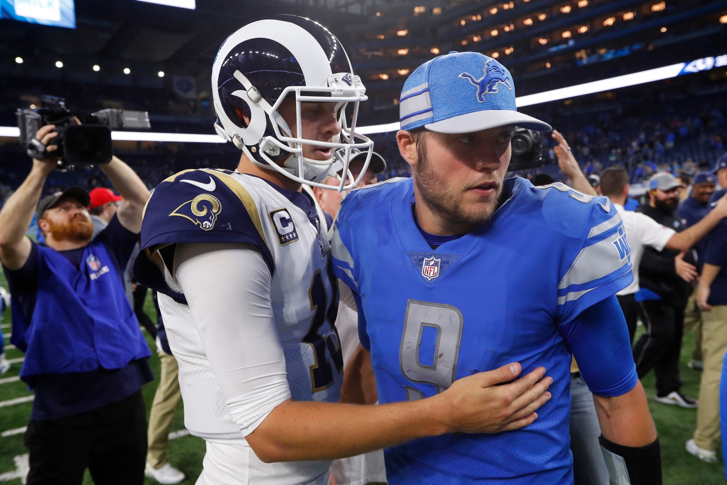Stafford finishes his Lions career with 3,898 of 6,224 completions for 45,109 yards and 282 touchdowns, which ranks him first in Lions history. Jared Goff leaves the Rams ranked fourth all-time in career passing with 1,536 out of 2,421 completions for 18,171 yards and 107 touchdowns.