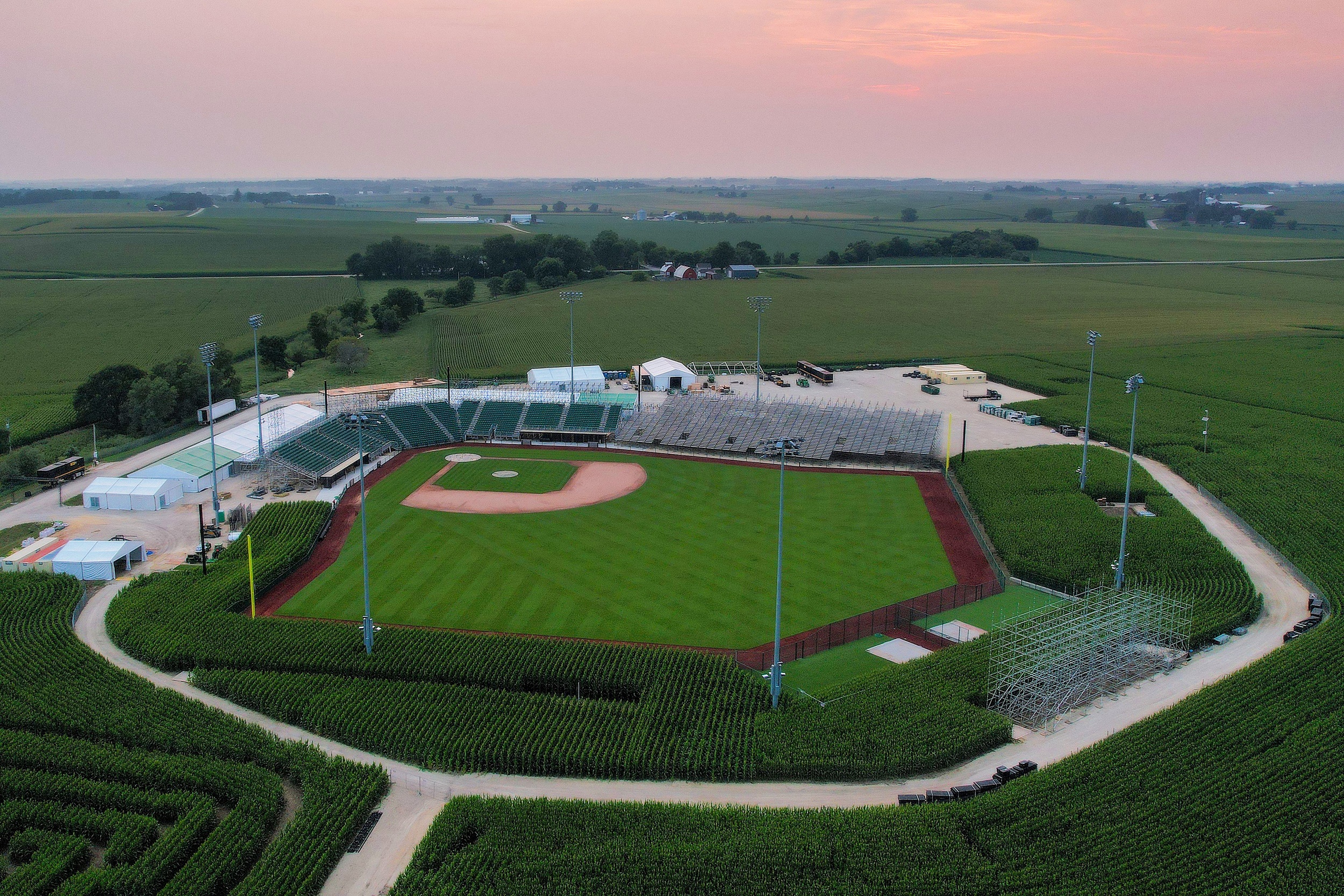 The ariel cameras showed the top of the baseball field several times during the game, showing that the field was not far from the original movie field. It reminded you of the film’s final scene where the cars were arriving to watch the game.