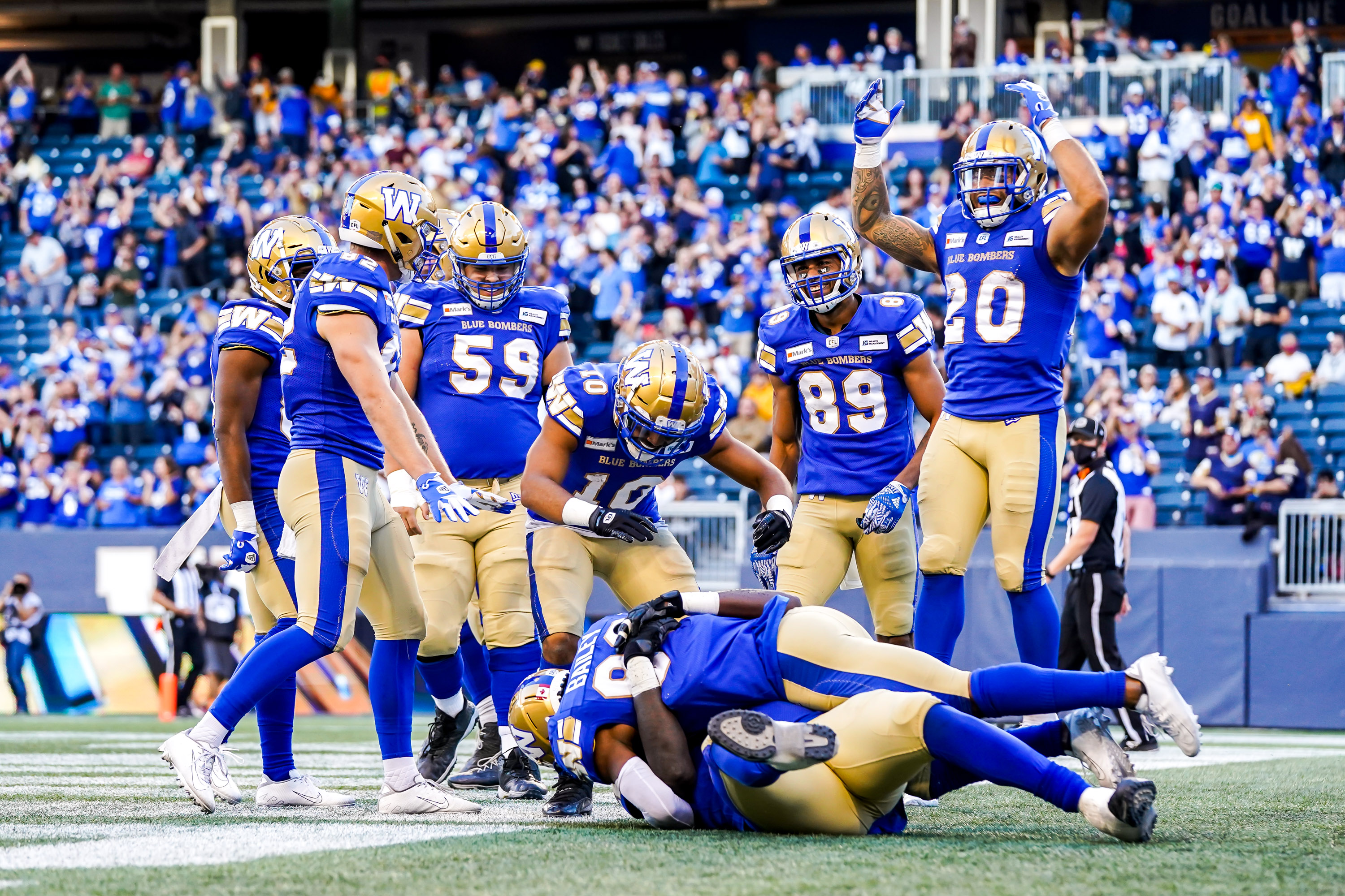 Zach Collaros finished the night 32/40 for 292-yards, two touchdowns, and one interception. Brady Oliveira led the Blue Bombers in rushing with thirteen carries for 29-yards. Wide Receiver Kenny Lawler led the Blue Bombers in receiving yards with ten receptions for 99-yards. The defense had one sack, one interception, and one forced fumble.