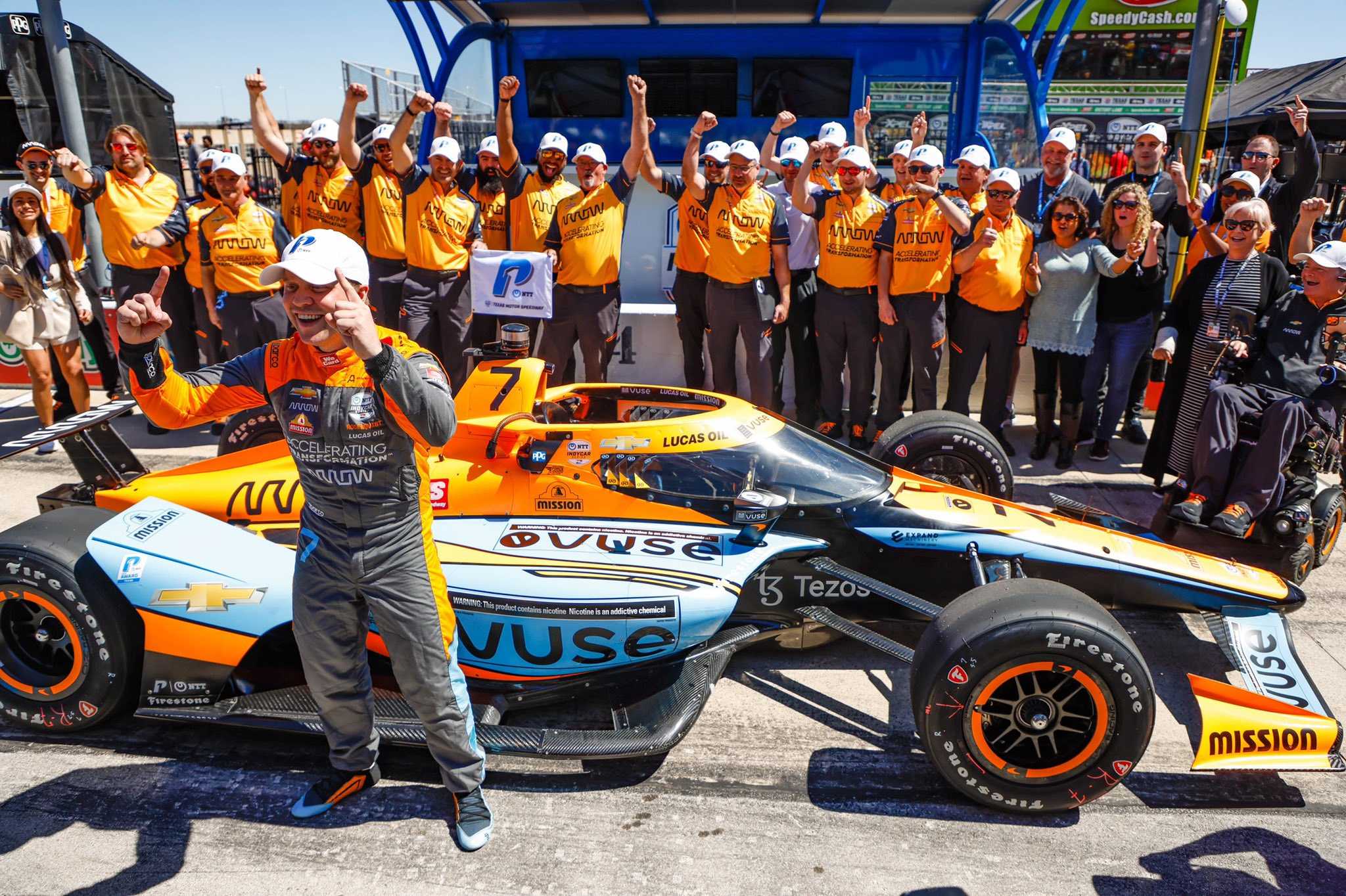 Taking the pole position was Arrow McLaren SP’s Felix Rosenqvist, with a time of 46.8906 at 221.110 mph. Qualifying second was the St. Petersburg winner Scott McLaughlin with a time of 46.8936 at 221.096.