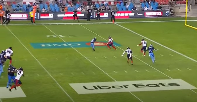 In the first quarter, the Alouettes had the ball to begin the game but quickly went two-and-out and punted the ball to the Argonauts. On Toronto’s first possession, quarterback McLeod Bethel-Thompson led the offense down to the Alouettes’ ten-yard line. Then, he tried to throw the ball to his receiver Cam Phillips, but Mike Jones initially intercepted it.