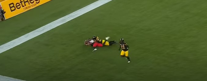 On the Ticats’ next possession, the Stampeders’ defense stepped up. On third-and-one, Ticats quarterback Dane Evans went for a quarterback sneak, but Titus Wall stripped the ball from Evans and returned it for a 45-yard touchdown, tying the game 27-27. Ticats fans and players could not believe what they saw after being up 24-0 early in the game.