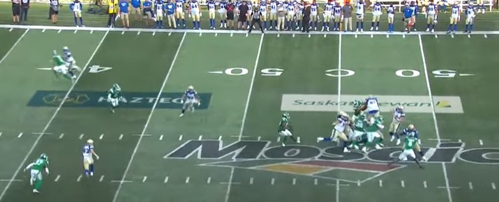 Saskatchewan’s offense drove the ball down to Winnipeg’s 22-yard line before Brett Lauther made a 30-yard field goal for a 14-0 lead with 13:36 left. On Winnipeg’s next possession, the offense woke up. Zach Collaros threw a couple of passes, while Brady Oliveira had two carries for eight yards.