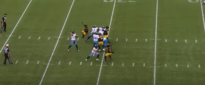 After Hamilton went two-and-out, Toronto’s offense moved the ball into Hamilton’s four-yard line. The Argonauts got tricky when Bethel-Thompson handed the ball off to Kurleigh Gittens Jr., who then handed it off to Brandon Banks, and Banks avoided a tackle before scoring a touchdown for an 18-8 lead with 11:27 left.