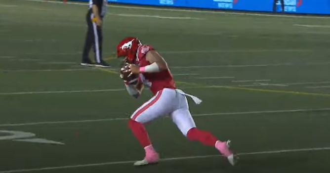 Late in the fourth quarter, Toronto quarterback McLeod Bethel-Thompson’s pass was picked off by Cameron Judge and returned for a pick-six 71-yard touchdown, extending Calgary’s lead 21-2 with 4:10 left.
