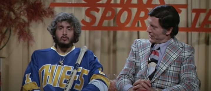 Carr interviewed players from the Chiefs, including Reggie Dunlop, Ned Braden, and this famous one with goalie Denis Lemieux explaining the rules of hockey.