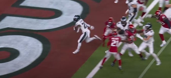 Philadelphia quarterback Jalen Hurts was 21/27 for 243 yards, two touchdowns, and nine carries for 23 yards. Running back Miles Sanders had 17 carries for 93 yards, and one touchdown, while tight end Dallas Goedert had eight catches for 100 yards and one touchdown.