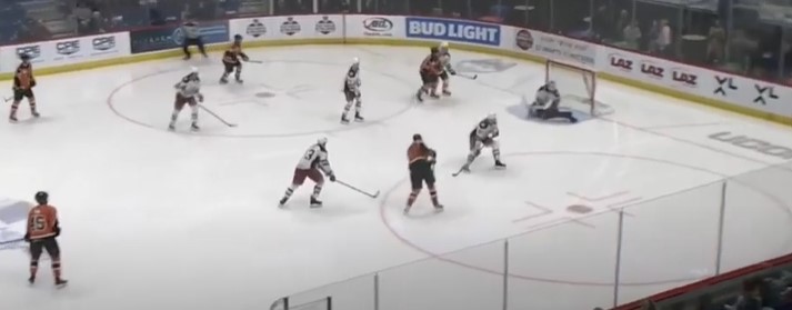 Before the second period began, Ian Laperriere reshuffled the lines in hopes of getting the Phantoms to score. The Phantoms came right out of the gate with two shots by Garrett Wilson and Cam York. One player that was hustling out on the ice was Kieffer Bellows. He stole a couple of pucks and came close to scoring both goals but Louis Domingue saved them.