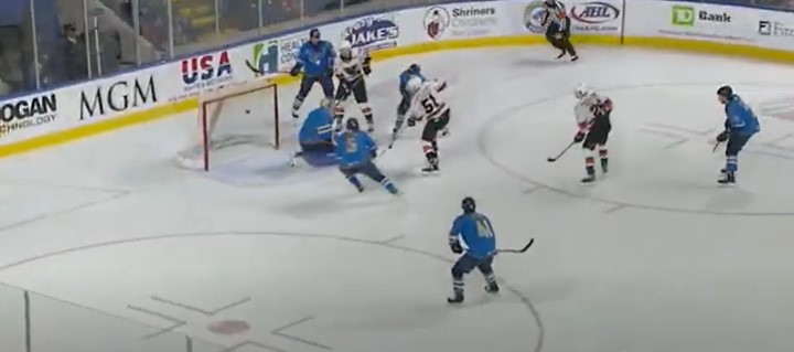 After the power play expired, Pat Nagle made a right-pad save before getting hit by a Springfield player. Nagle received several cheap shots by Springfield in this game, leading to Lehigh Valley defending him.