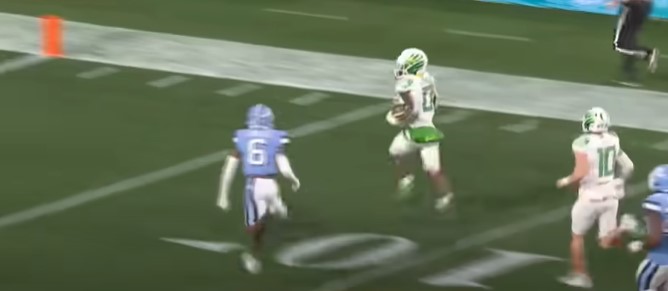 Oregon quarterback Bo Nix completed 23 of 30 passes for 205 yards, two touchdowns, one interception, and five carries for six yards. Running back Bucky Irving had 13 carries for 149 yards and two touchdowns. Wide receivers Chase Cota (3 catches, 42 yards, 1 touchdown) and Troy Franklin (5 catches, 24 yards, 1 touchdown) combined with eight catches for 66 yards, and two touchdowns.