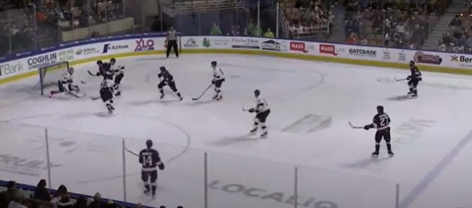 Eight minutes and fifty seconds into the second period. The Railers tied the game 1-1 on a goal by Jared Brandt (4). Reece Newkirk and Brent Beaudoin assisted his goal. Forty-eight seconds later. Worcester took a 2-1 lead on a goal by Billy Jerry (1). Myles McGurty and Quin Ryan assisted his goal.