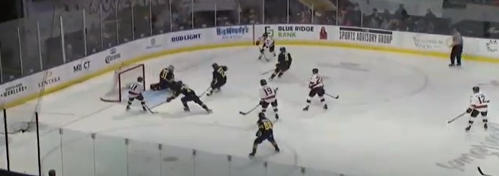 Two minutes and forty-seven seconds into the second period. Stepan Timofeyev (3) scored for Norfolk to tie the game 1-1. Griffin Lunn and Eric Cooley assisted with his goal. The game remained tied 1-1 after two periods.