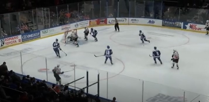 The Crunch extended their lead seven minutes and fifty-four seconds into the second period. Lucas Edmonds (8) had the puck as Syracuse was getting set up for a shot opportunity. Edmonds passed the puck to Declan Carlile (12), who then passed it to Ryan Jones (3). Jones skated from the left dot and riffled it over Ersson’s glove and into the net with 12:06 left.