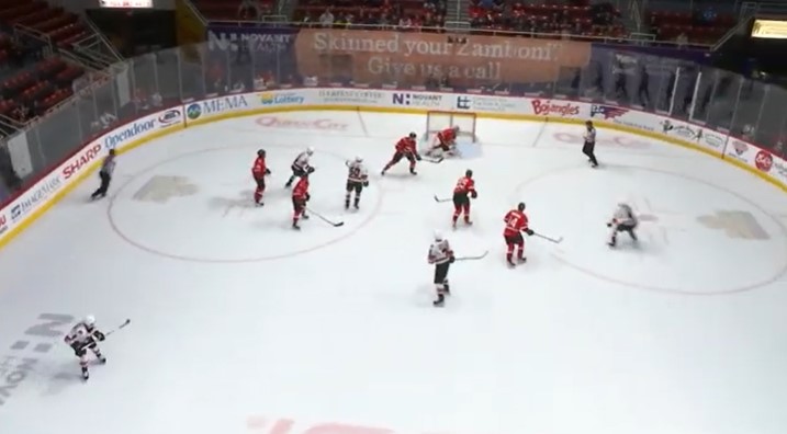 Thirteen seconds later, Olle Lycksell (2) stole the puck inside the Checkers’ zone and passed it to Adam Brooks (1). Brooks took a shot but it went off a Checkers player and Cooper Marody (1) rebounded it and flipped it with a backhand shot into the net. It was now 3-1 with 18:58 left.