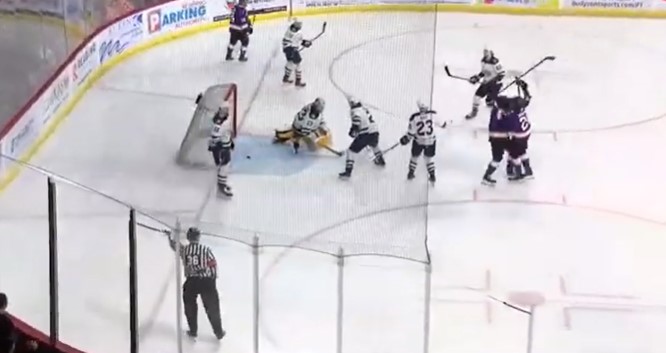 Then, forty-four seconds later, Zayde Wisdom (3) made it 4-2 Royals with assists from Evan Barratt and Jacob Gaucher. The Royals had 13 shots on goal and led 4-2 after two periods.