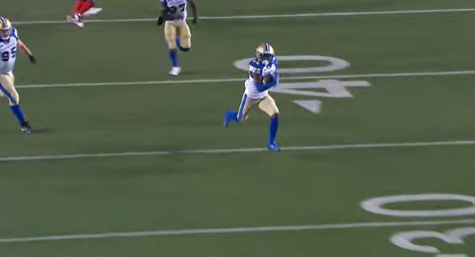 In the third quarter, Winnipeg punter Jamieson Sheahan punted the ball to Tommylee Lewis for 51 yards. Lewis found a gap in the middle and took off for 45 yards before getting tackled on the Blue Bombers’ 37-yard line. Calgary did go far and kicker Rene Paredes made a 40-yard field goal to take a 9-6 lead with 9:46 left.
