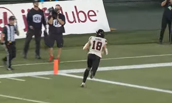 Edmonton quarterback Tre Ford tried to complete a deep pass to Eugene Lewis but it was incomplete. However, a defense pass interference penalty on B.C. placed the ball on the Lions’ 32-yard line. Six plays later, Ford completed a four-yard pass to Dillon Mitchell which made it 34-28 B.C. with 2:53 left in the game.