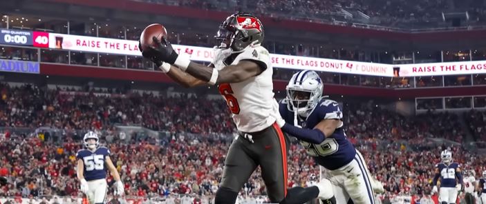 Julio Jones is six foot three and weighs 220 pounds. The 34-year-old from Foley, Alabama, played one season for the Tampa Bay Buccaneers in 2022 with 24 catches for 299 yards (12.5 YAC), two touchdowns, and five carries for 45 yards in ten games.