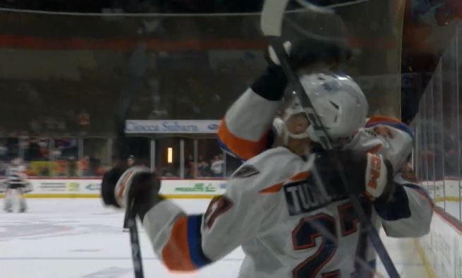 A minute and nine seconds into overtime, Samu Tuomaala held the puck while the Phantoms changed players. He passed the puck to Elliot Desnoyers (4). Desnoyers made a nice pass to Samu Tuomaala (2), who shot the puck over Dylan Garand’s right pad and into the net which gave the Phantoms a 5-4 win over the Wolf Pack. Adam Ginning (3) was credited with the secondary assist.