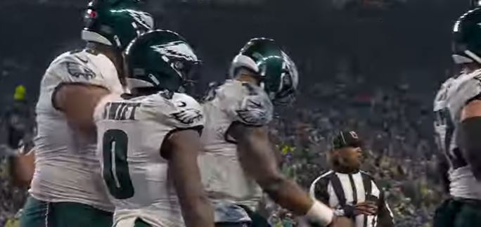 The Eagles’ offense did get off to a good start on the first series of the game when they went on a 15-play drive for 75 yards resulting in a Jalen Hurts three-yard touchdown. Hurts would later score a one-yard touchdown and Jake Elliott made a 27-yard field goal.