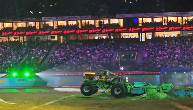 The Hot Wheels Monster Trucks Glow Party visited the Paris La Defense Arena in Nanterre, France, where three old trucks make an appearance.