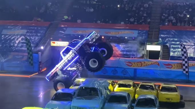 The Hot Wheels Monster Trucks Glow Party visited Total Mortgage Arena in Bridgeport, Connecticut, featuring crush-crushing action, donuts, and freestyle. Bigfoot, Gunkster, 5 Alarm, Demo Derby, Tiger Shark, Mega Wrex, and Bone Shaker compete in racing, freestyle, and more.