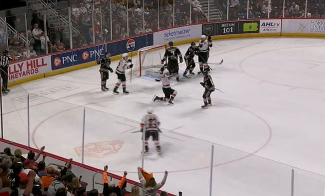 At 3:29 of the first period, Hershey took a 1-0 lead on a goal by Hendrix Lapierre (1) with assists from Chase Priskie (1) and Ethen Frank (1). The Phantoms had eight shots on goal but trailed 1-0.