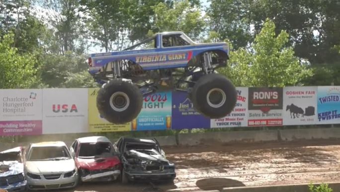 The Overdrive Monster Truck Tour Madness visited The Goshen Stampede in Goshen, Connecticut, featuring the Virginia Giant and Hurricane Force performing freestyle.
