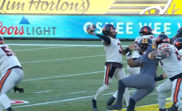 On the third play of the second quarter, B.C. Lions quarterback Vernon Adams Jr. underthrew a seven-yard touchdown pass caught by Justin McInnis. McInnis battled a Hamilton secondary to make the catch and B. C’s lead grew to 21-1 with 13:16 left. The drive went for six plays for 70 yards.