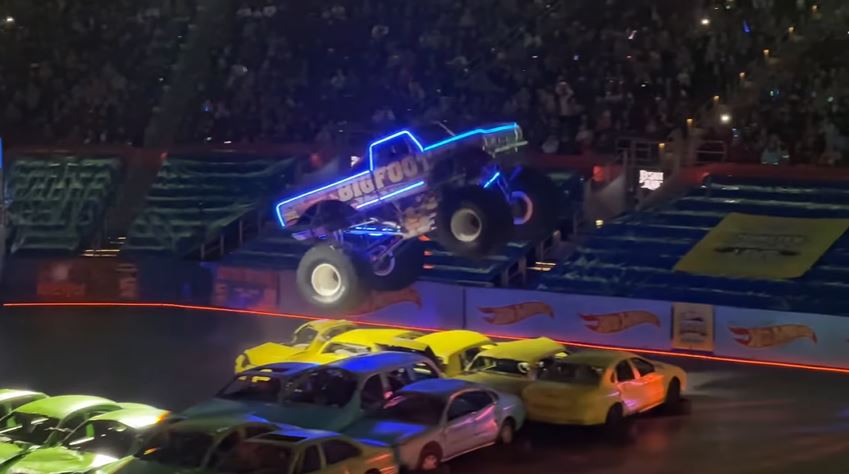 The Hot Wheels Monster Trucks Live Glow Party tour visited the KFC Yum! Center in Louisville, Kentucky, featuring donuts, freestyle, and more. The trucks that competed in the show were Bigfoot, Bone Shaker, Skelesaurus, Mega Wrex, Tiger Shark, 5-Alarm, and Gunkster.
