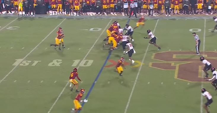 USC had 443 yards on offense (308 yards passing, 135 yards rushing), and 22 first downs. Quarterback Miller Moss completed 20 of 28 passes (71.4%) for 308 yards, two touchdowns, one carry for 7 yards, and one touchdown. Running back Woody Marks had 15 carries for 94 yards, three touchdowns, and five catches for 48 yards.