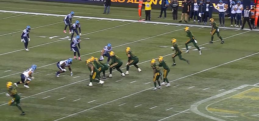 Edmonton running back Justin Rankin began the drive by running for four yards. He would get an additional two carries for 12 yards, while quarterback Tre Ford completed three passes for 34 yards to reach the Argonauts’ 37-yard line then the drive stalled. Toronto got the ball back with 4:50 left of the first quarter.
