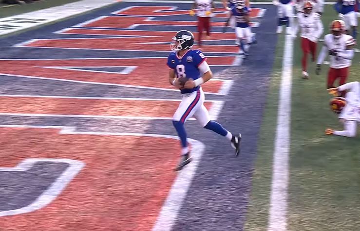 Daniel Jones is six foot five and weighs 230 pounds. The 27-year-old from Charlotte, North Carolina, signed a contract extension with the Giants on May 7, 2023, for $160 million including a signing bonus of $36 million, and $92 million guaranteed. In 2024, Jones completed 216 of 341 passes (63.3%) for 2,070 yards, 8 touchdowns, 7 interceptions, 67 carries for 265 yards, and two touchdowns in 10 games. The Giants released him on November 22, 2024.