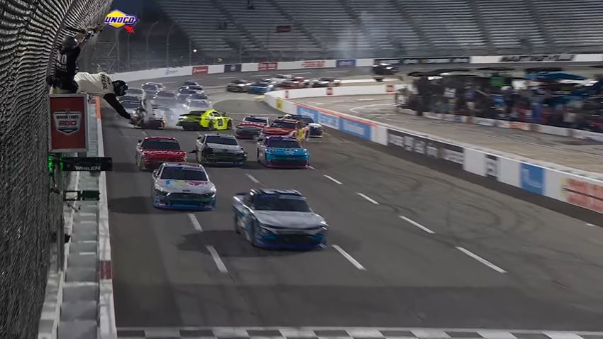 Matt DiBenedetto spun at Turn 2 to bring out the 14th caution sending the race to overtime. In overtime, Austin Hill passed Sammy Smith from the inside of Turn 4 as another multi-car crash happened with Hill taking the win by 0.190 seconds over Sheldon Creed. It was the 100th win for owner Richard Childress in NASCAR. Hill also picked up the $100,000 Dash 4 Cash bonus.