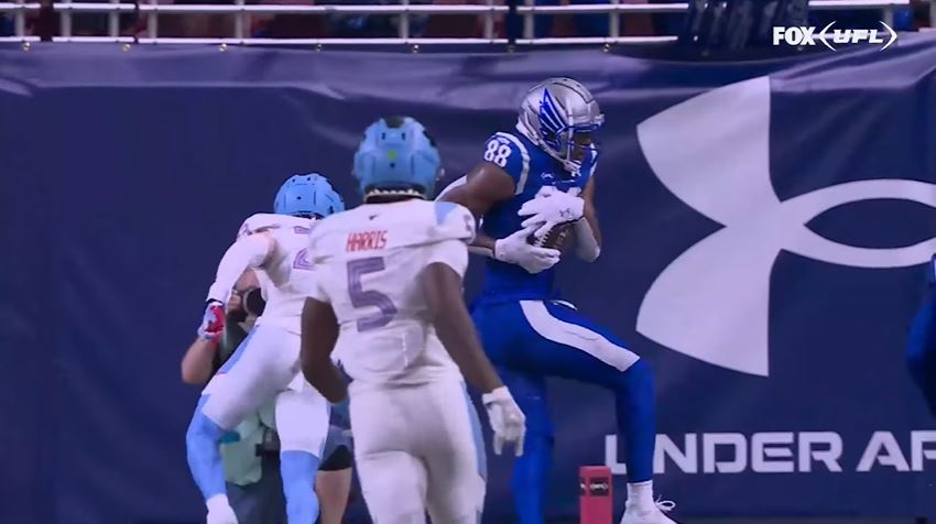 In the second quarter, quarterback Max Duggan threw a long pass to Hakeem Butler, who made the catch for a 30-yard touchdown. St. Louis went for a two-point conversion but did not get it and led the Renegades 6-0 with 1:54 left. Just before halftime, St. Louis kicker Rodrigo Blankenship made a 49-yard field goal for a 9-0 lead.