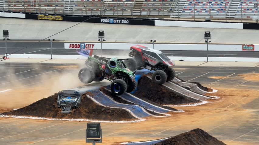 The Overdrive Monster Trucks visited the iconic Bristol Motor Speedway in Bristol, Tennessee, featuring the qualifying races, racing, and freestyle. The trucks that competed in the show were Cyber Attack, Jurassic Attack, Bad Company, Bad News Travels Fast, Block Head, Colossus, Dirt Crew, Dozer, Smashosaurus, Tailgator, Vendetta, and the Virginia Giant.
