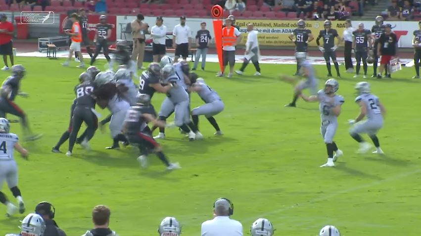 Tirol quarterback Adrian Platzgummer completed 5 of 11 passes (45%) for 154 yards, three touchdowns, and six carries for 58 yards, while running back Jan Wiesauer 17 carries for 110 yards, and three touchdowns leading the Raiders to a 68-0 win over the Centurions.