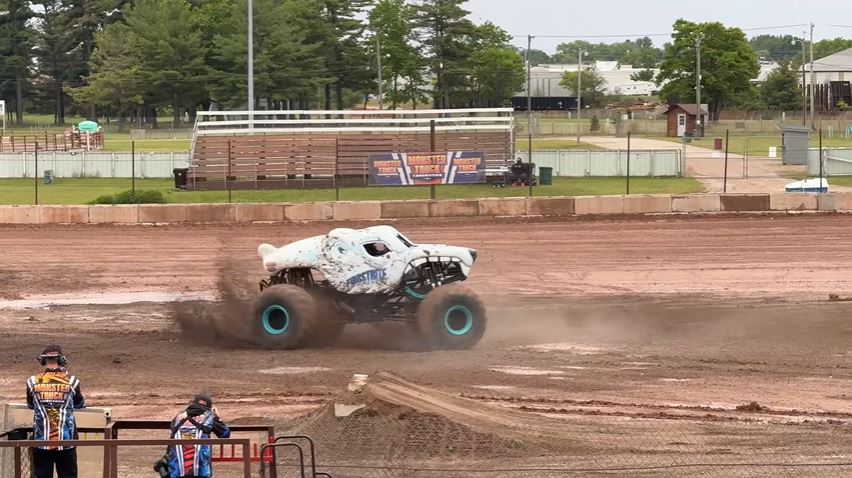 The Monster Truck Throwdown tour visited the Upper Peninsula State Fairgrounds in Escanaba, Michigan, featuring the best trick competition, racing, and freestyle. The trucks that competed in the show were Frostbite, Lil Miss Dangerous, High Tide, and The Haymaker.