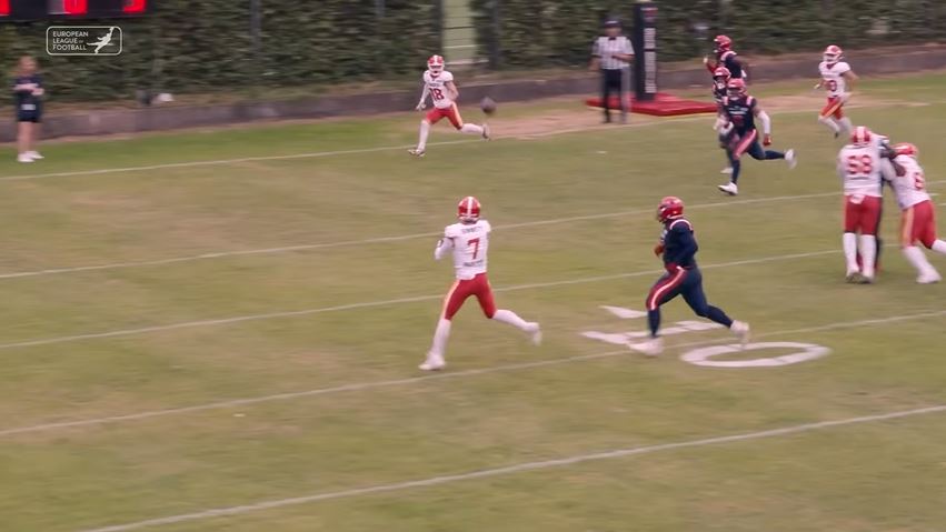 Fehervar quarterback Brock Domann completed 23 of 36 passes (63.8%) for 259 yards, three touchdowns, and two carries for five yards.