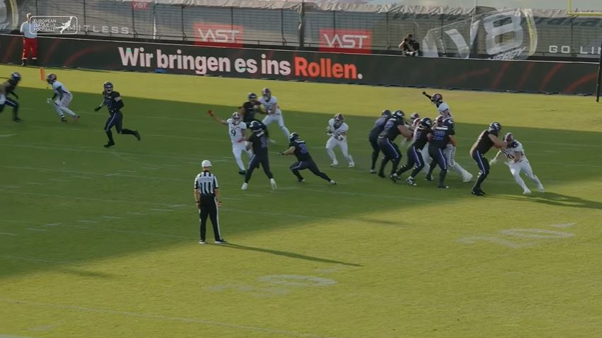 Tirol quarterback N’Kosi Perry completed 7 of 14 passes (50%) for 120 yards, one touchdown, and five carries for 55 yards leading the Raiders to a 35-18 win over the Fire. Running back Lukas Haslwanter had 19 carries for 100 yards, and one rushing touchdown. Rhein quarterback Chad Jeffries completed 28 of 42 passes (66%) for 363 yards, and one touchdown.