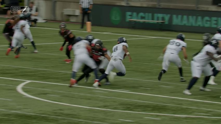 Wroclaw quarterback D.J. Irons completed 17 of 23 passes (74%) for 163 yards, three touchdowns, and 13 carries for 122 yards to lead the Panthers to a 54-2 win over the Centurions. Running back Dawid Brzozowski had 13 carries for 88 yards and four rushing touchdowns.