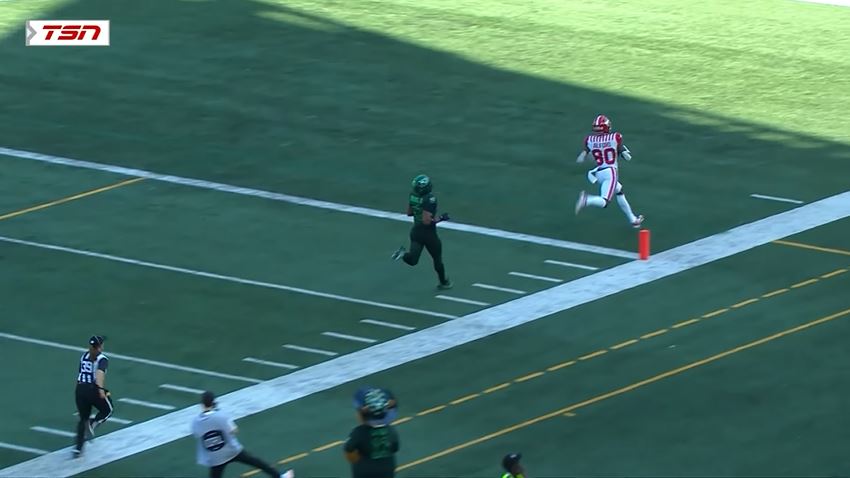 Calgary started on the 29-yard line. Quarterback Vernon Adams Jr. spotted a busted coverage and threw the ball to Damien Alford for an 81-yard touchdown. It was now 24-10 with 9:56 left.