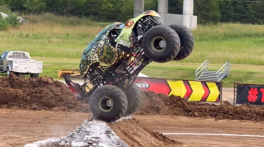 The Toughest Monster Truck Tour visited Stompin Grounds in Lamar, Missouri, featuring the wheel competition, racing, and freestyle. The trucks that competed in the show were Dirt Crew, Maximus, Jurassic Attack, Shell Shocked, Tailgator, Smashosaurus, Vendetta, and Velociraptor.