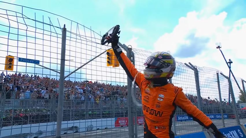 The NTT IndyCar Series visited the streets of Toronto, Ontario, Canada, on Sunday afternoon in the Ontario Honda Dealers Indy Toronto. Colton Herta started the race on the pole, and Alex Palou started in second. Before the race started, Santino Ferrucci was unable to compete in the race after suffering a crash in the morning warmup.