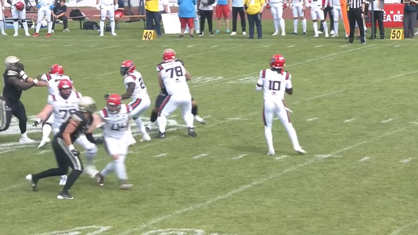 Tirol quarterback N’Kosi Perry completed 7 of 8 passes (87.5%) for 69 yards, one touchdown, and one carry for six yards. Running back Lukas Haslwanter had 20 carries for 200 yards, five rushing touchdowns, and one catch for 11 yards to lead the Raiders over the Centurions 63-6.