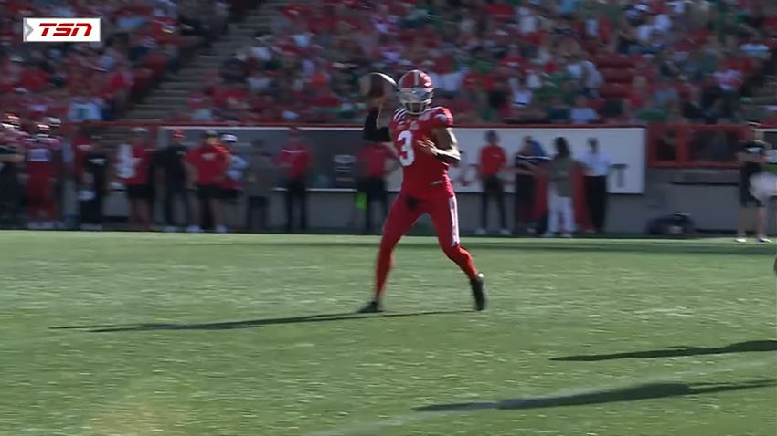 Late in the first quarter, Saskatchewan had the ball on the 50-yard line. Quarterback Trevor Harris’s pass intended for Dhonte Meyers was intercepted by Sheldon Arnold on the 38-yard line. However, Saskatchewan would get the ball back when the defense pressured Vernon Adams Jr. He threw the ball intended for Jalen Philpot, but Rolan Milligan Jr. was there for the interception on the 33-yard line with 3:43 left.