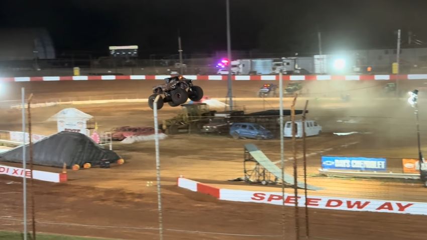 The 30th anniversary of the Fall Monster Truck Nationals was held at Dixie Speedway in Woodstock, Georgia, featuring donuts, wheelies, racing, and freestyle. The trucks that competed in the show were Illuminator, Toxic, Bad Company, Brutus, Geronimo Reincarnated, and Avenger.