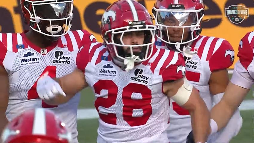 Late in the game, Hamilton’s offense moved the ball to the 39-yard line. On third down, Bo Levi Mitchell’s pass to Kenny Lawler was broken up by Jaydon Grant, and Calgary took over on the 30-yard line.